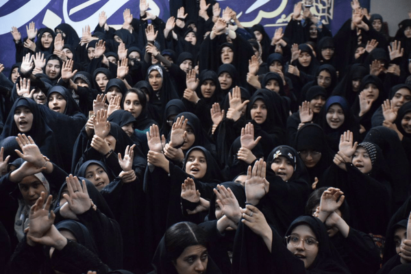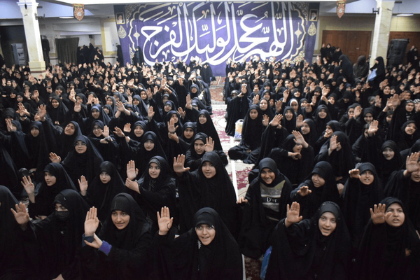 همچنین این بانوان به نشانه تجدید بیعت با مقام معظم رهبری، دستهای خود را به فراز آسمان رساندند و خود را دختر فاتح قلبها خواندند.