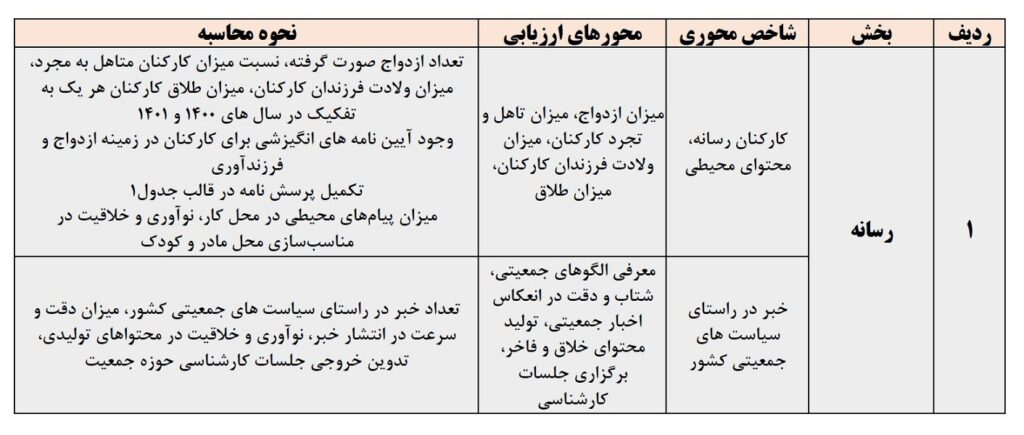 گفتنی است بخشهای مردمی رویداد جایزه ملی جوانی جمعیت در قالب جدول به شرح ذیل آمده است: